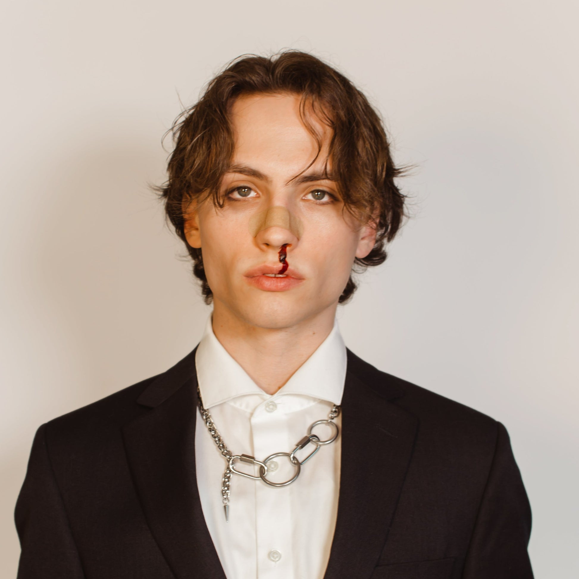 An original design with oversized metal chains and hardware. Inspired by snake silhouettes and industrial aesthetics. A representation the attitude of fearless experimentation. This chunky neck chain will get you noticed even with the most basic outfits.