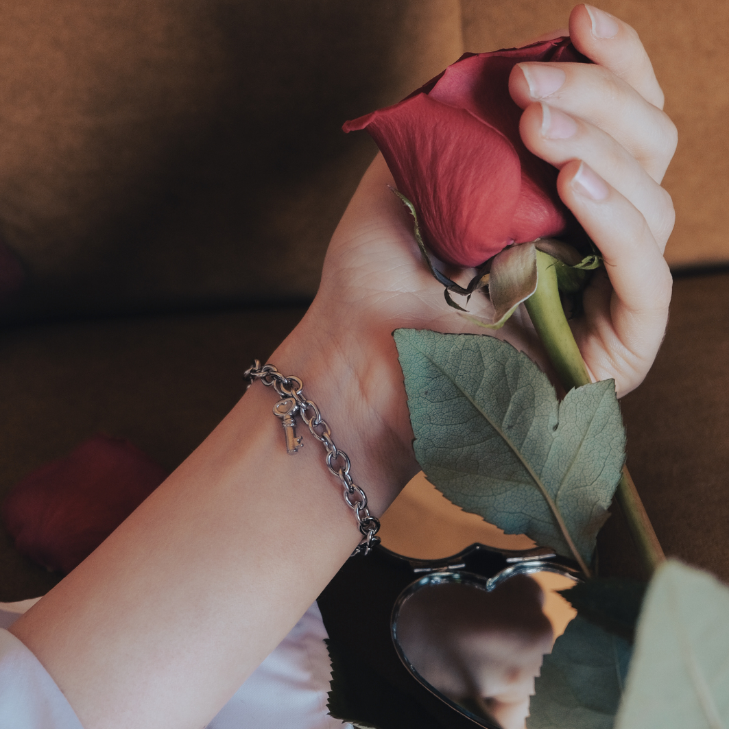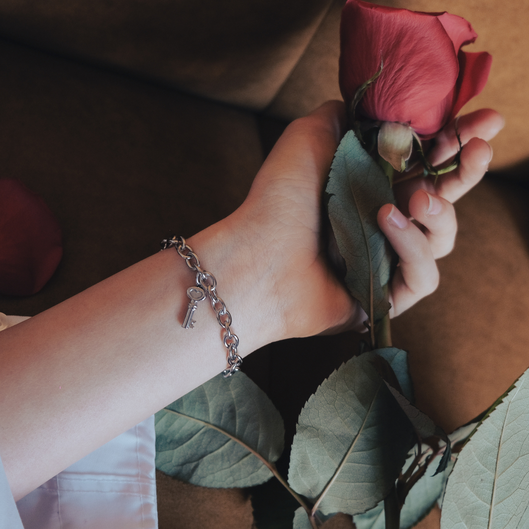 Introducing the Key of Heart bracelet from the Lock Hearts Collection. This elegant piece features a heart-shaped key pendant, symbolizing the unlocking of endless possibilities and the secrets of love and intimacy.