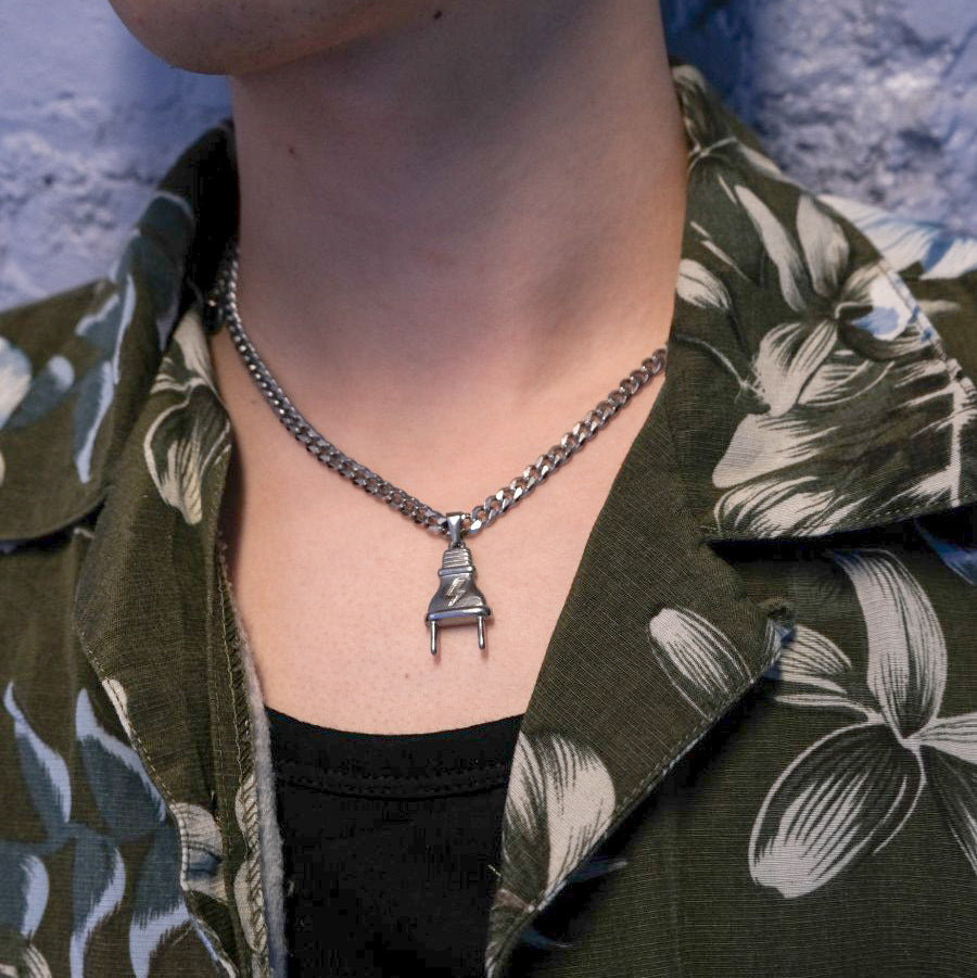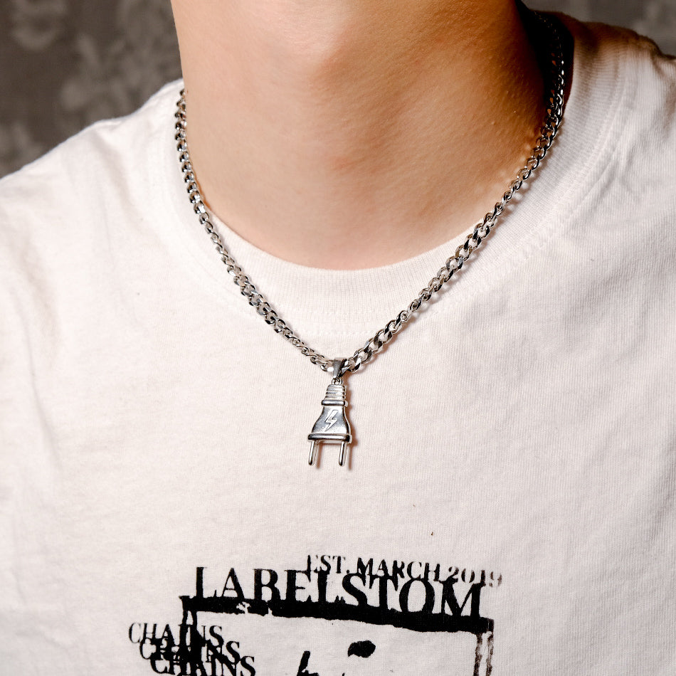 Electrify your outfit with this energy plug pendant necklace! A simple everyday Cuban Link chain staple, perfect for layering.