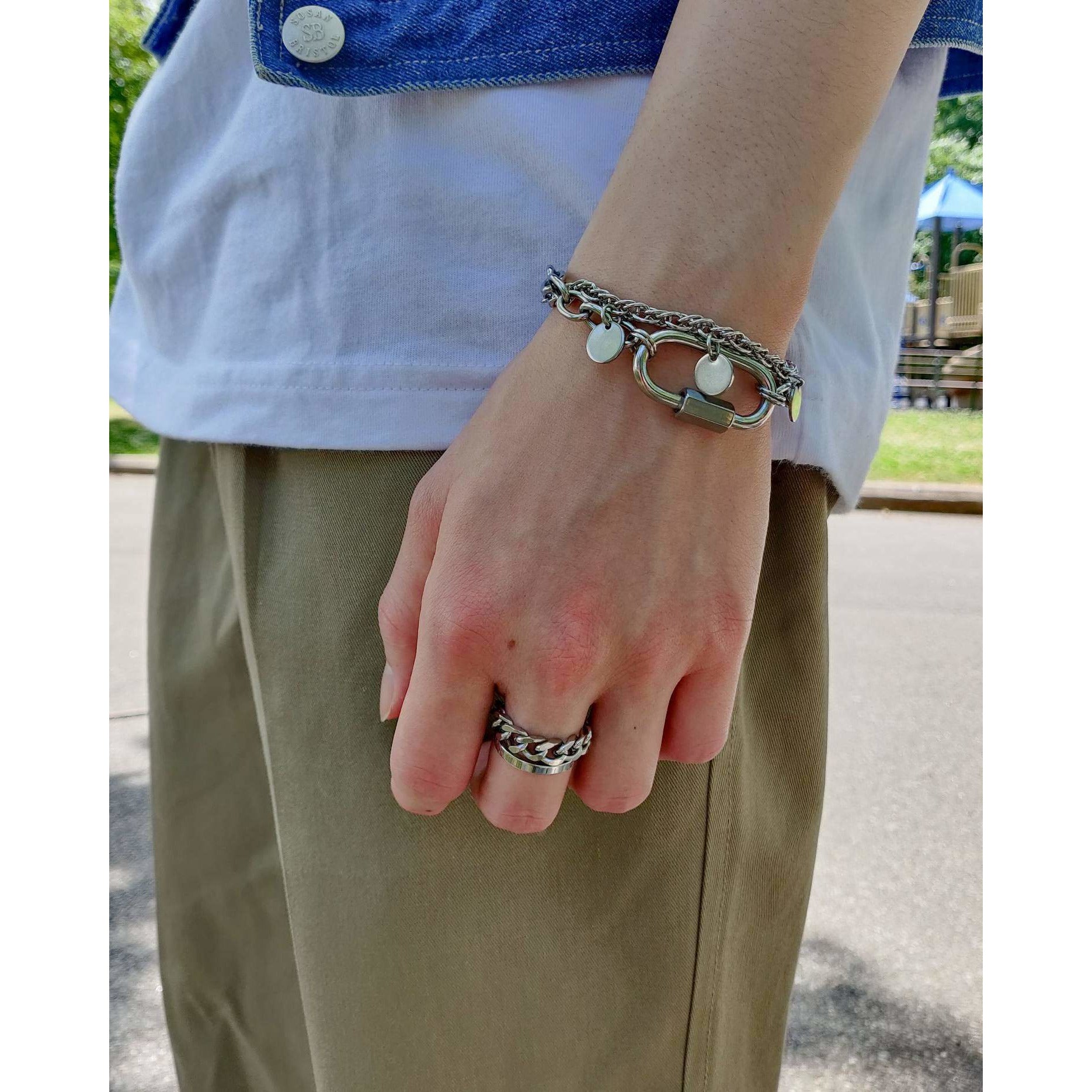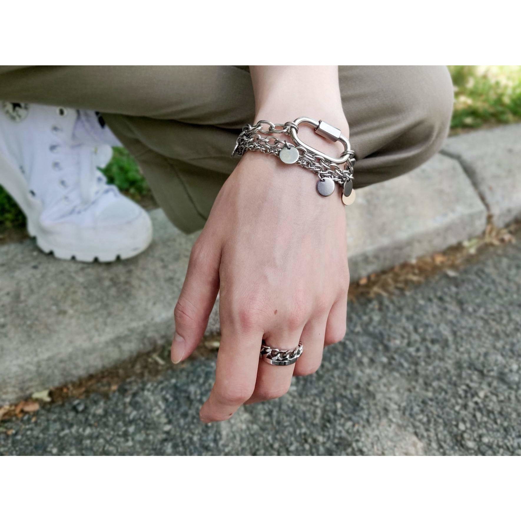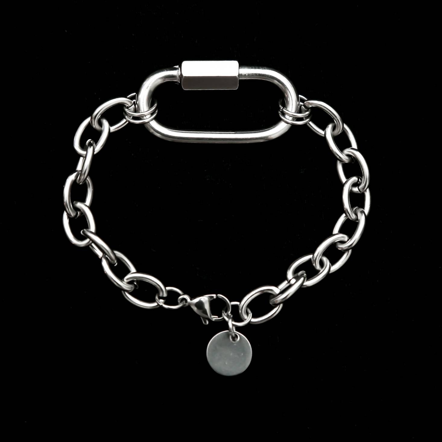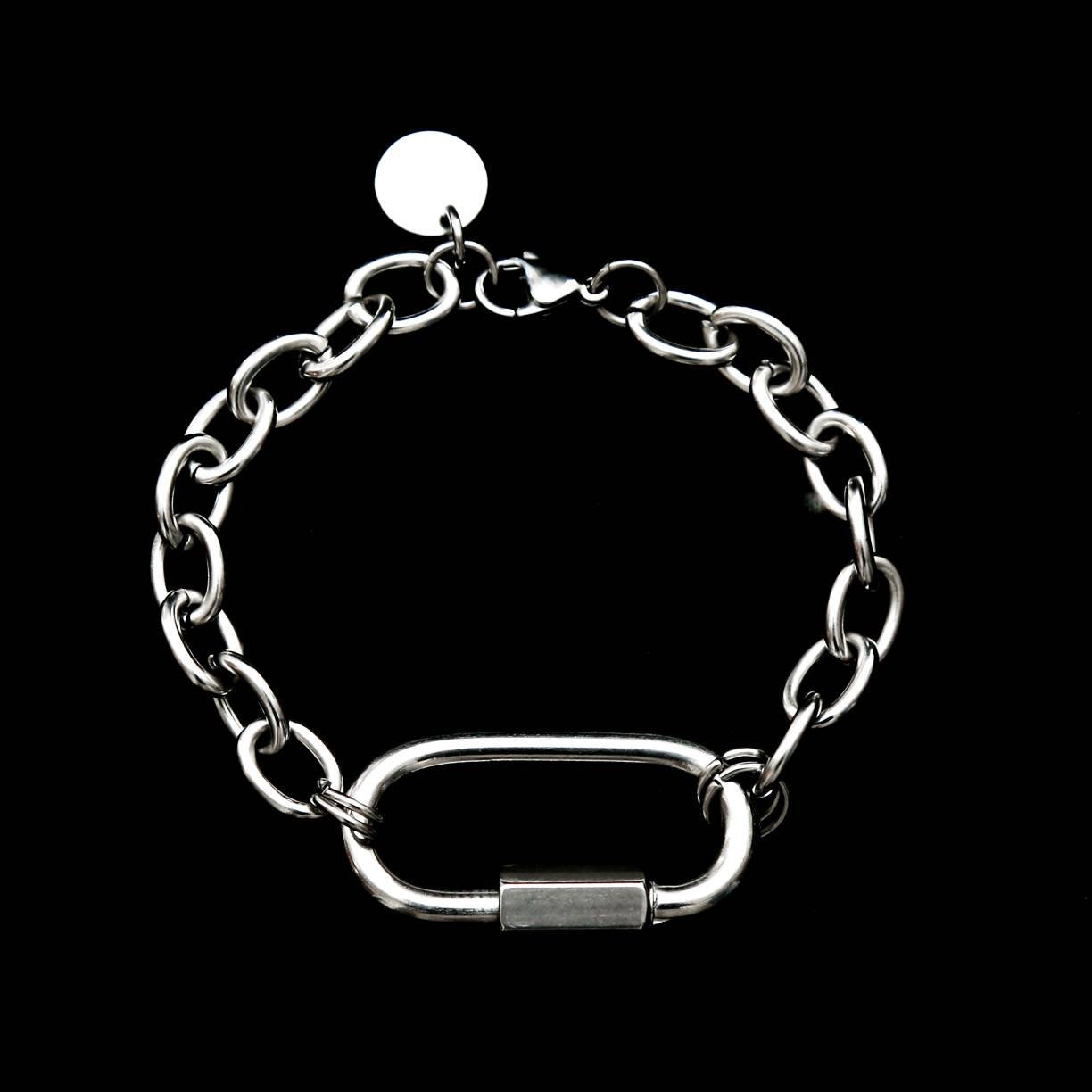 Explore new looks with this bold and unconventional stainless steel bracelet featuring a chunky quick link, ready to make a statement.